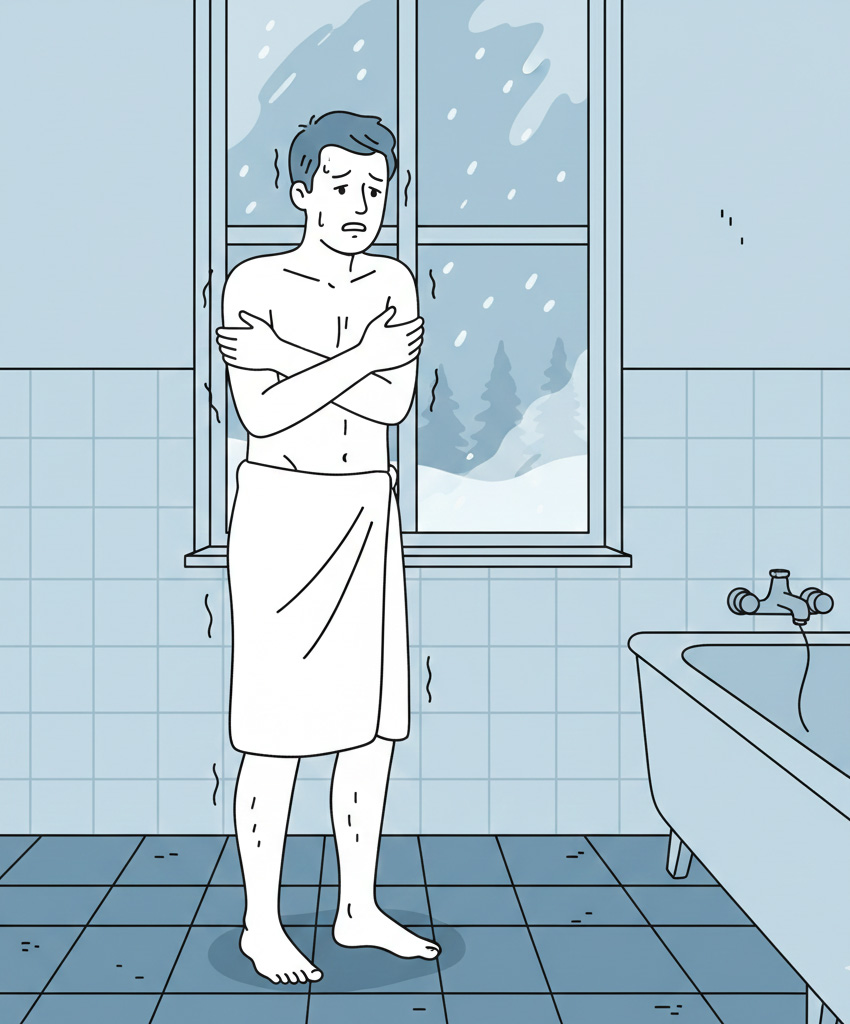 「うちは大丈夫」と思いがちですが、日本の浴室の多くは断熱性能が低く、冬場の浴室温度が10度以下になることも珍しくありません。