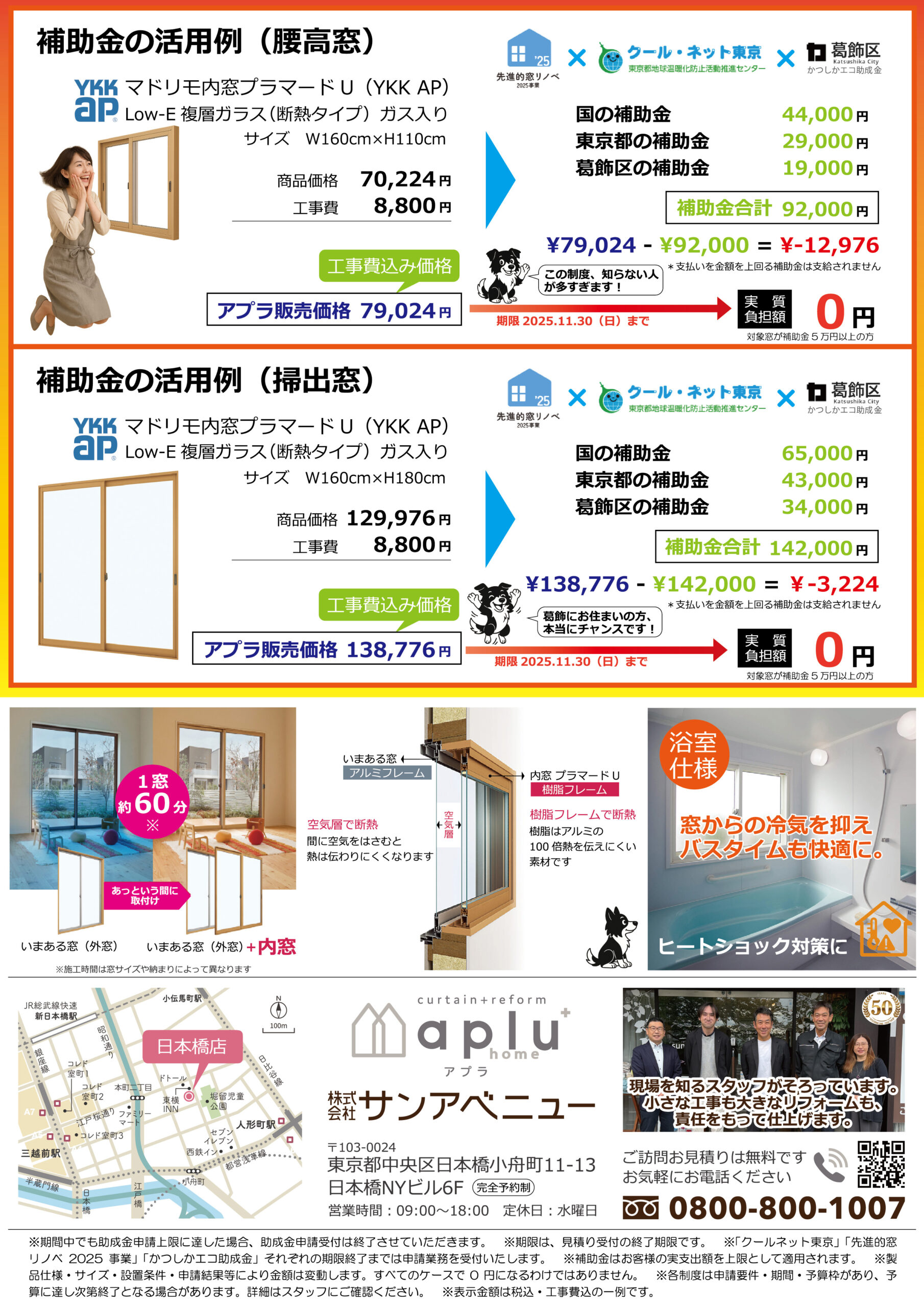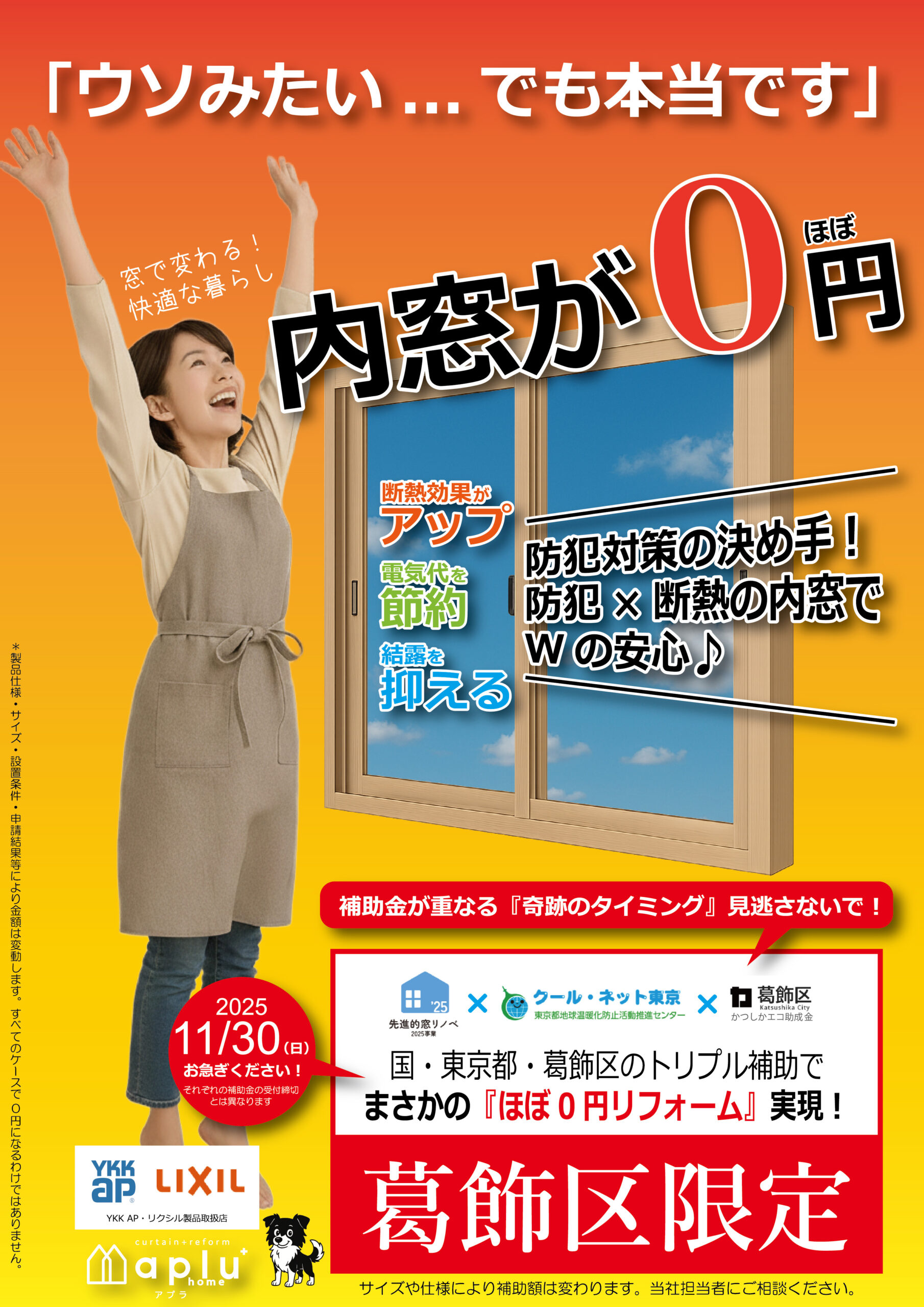 高性能な「内窓(二重窓)」リフォームが実質0円になるチャンスです!