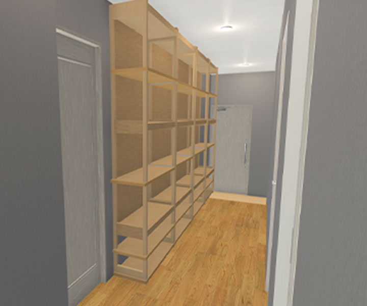 「出し入れが簡単な棚を廊下の壁につくりたい。」