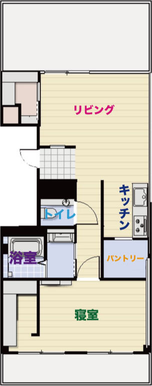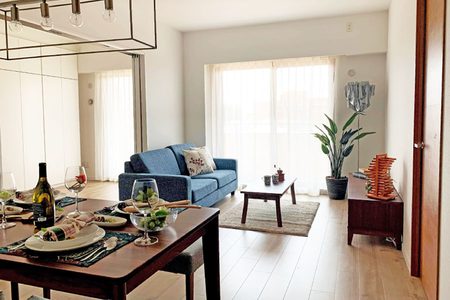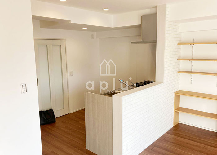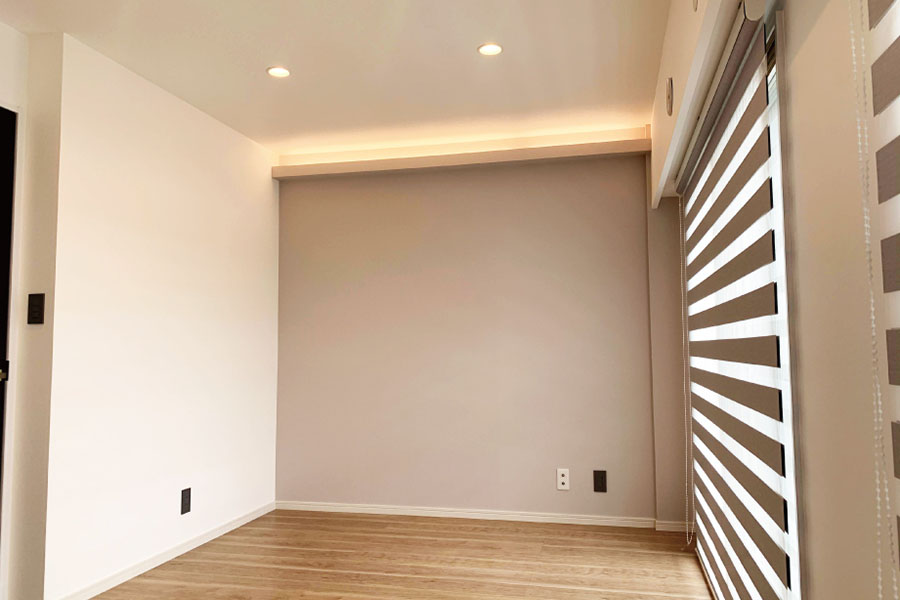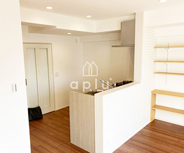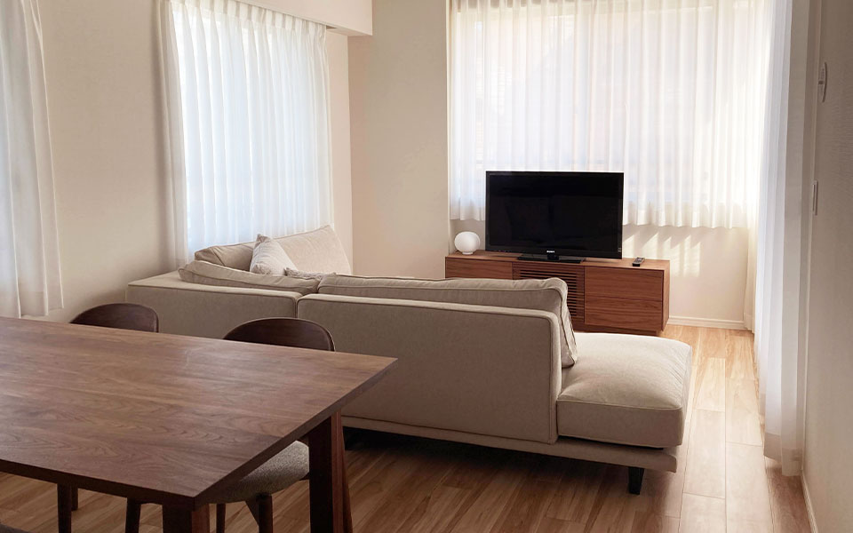 一人暮らしを快適過ごすにために広々とした間取りにリノベーション。 広いベランダとリビングを直結させてよりリビングを開放的に演出しました。 寝室にはウォークインクローゼットとテレワークのための書斎スペースをもうけました。
