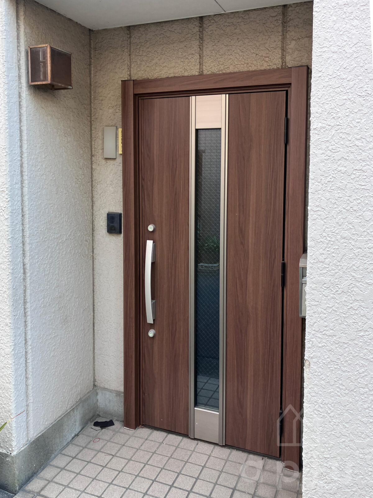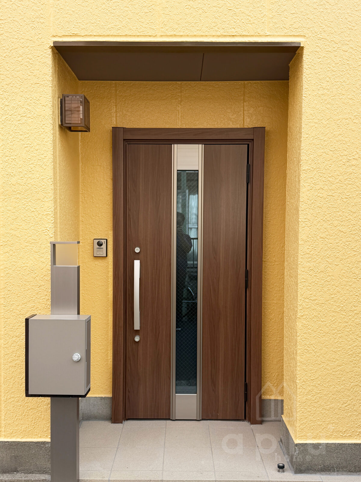 サインポストを最新モデルに交換し、玄関タイルを大判タイルへ張り替えることで、高級感のあるエントランスを演出しました。